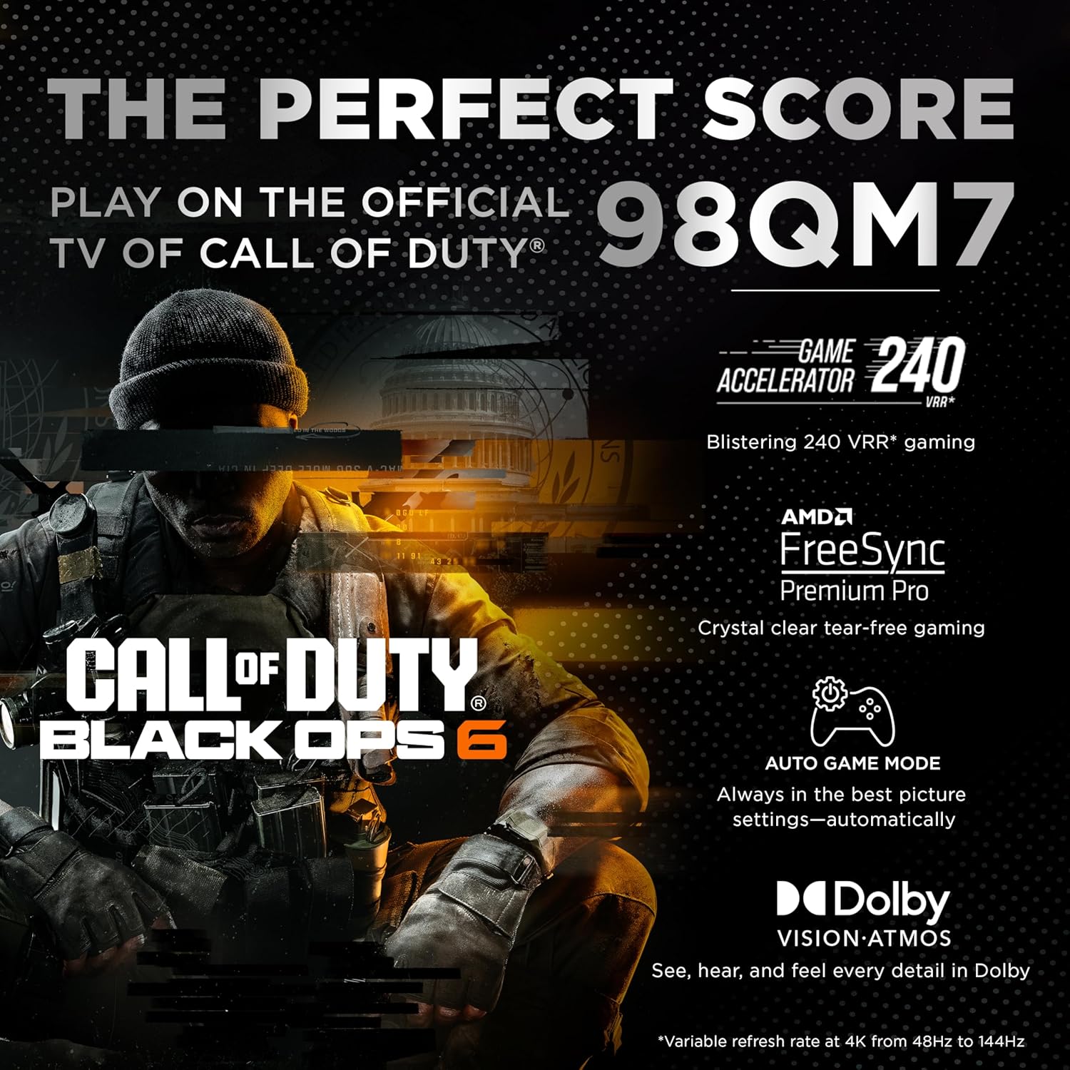 - Refresh Rate: 144 Hz (Variable Refresh Rate up to 240Hz with Game Accelerator)