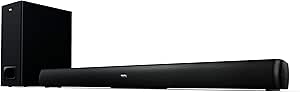 Upgrade your home entertainment setup with the TCL Alto 5+ 2.1 Channel Sound Bar. This renewed 32-inch sound bar delivers clean, loud sound with a minimalistic design. Complete with a wireless subwoofer for extra bass and flexible placement, it offers a quick and hassle-free setup. Enjoy distortion-free audio at any volume and optimized performance with sound modes for music, movies, and news.
