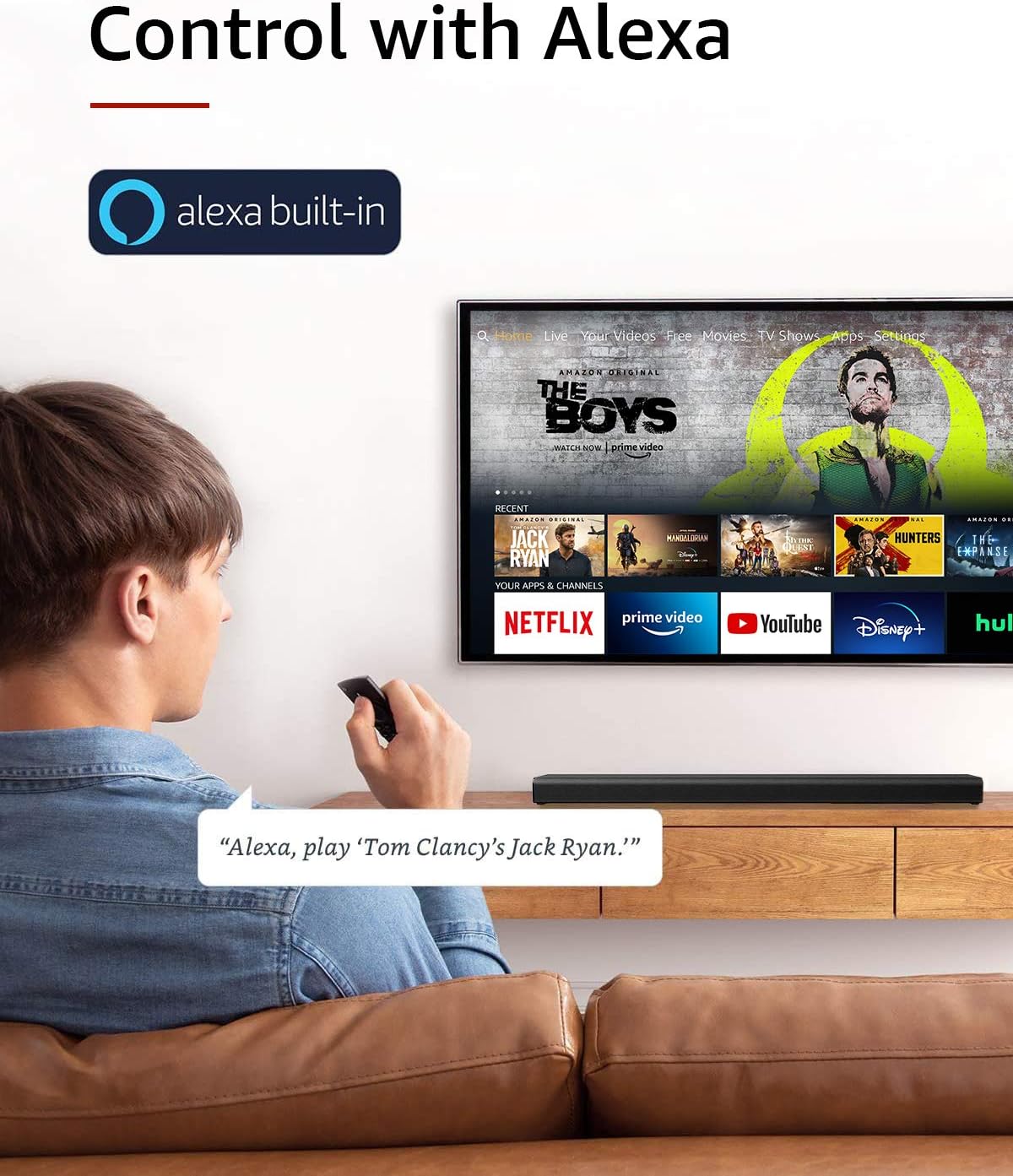 - Features: Fire TV Edition, Built-in Subwoofer, Optimized Sound Modes (Movie, Music, News)