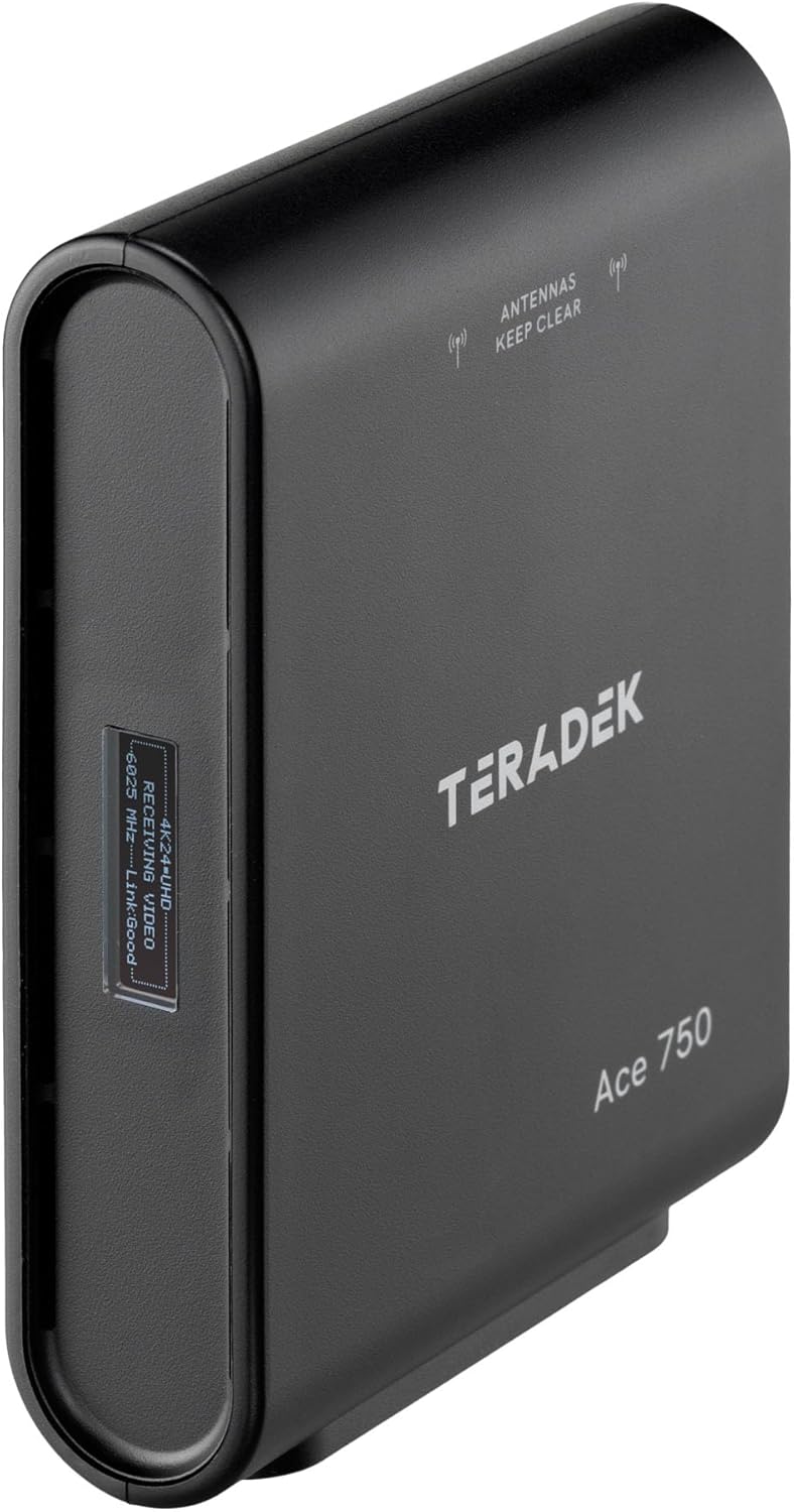 The Teradek Ace 750 HDMI Wireless Receiver delivers uncompressed, zero-delay 4K video up to 750 feet. Its advanced features and rugged design make it ideal for professional video production environments.
