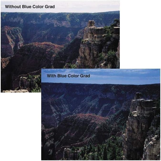 Introducing the Tiffen 52mm Graduated Blue Filter. Perfect for adding a touch of creative color to your photographs, this filter creates a seamless transition between the blue tint and the unaltered portion of your scene.