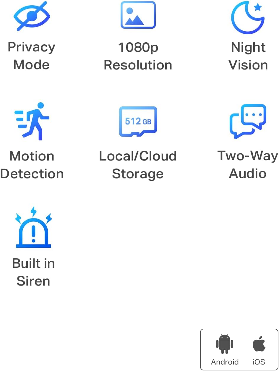 - Storage: MicroSD Card (up to 512 GB), Tapo Care Cloud Storage