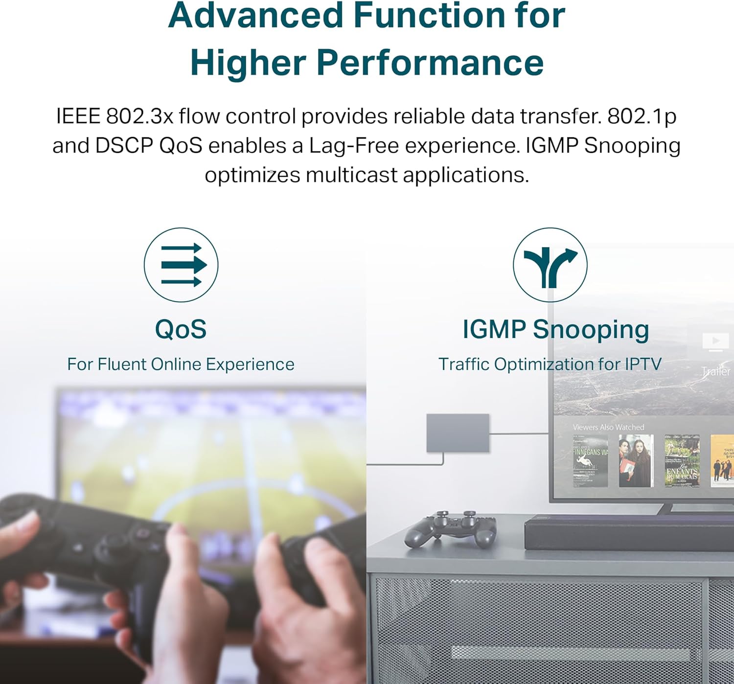 - Features: QoS, VLAN, IGMP Snooping, Link Aggregation