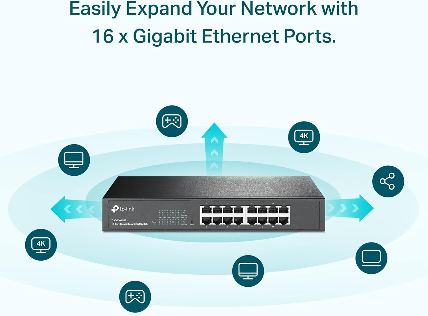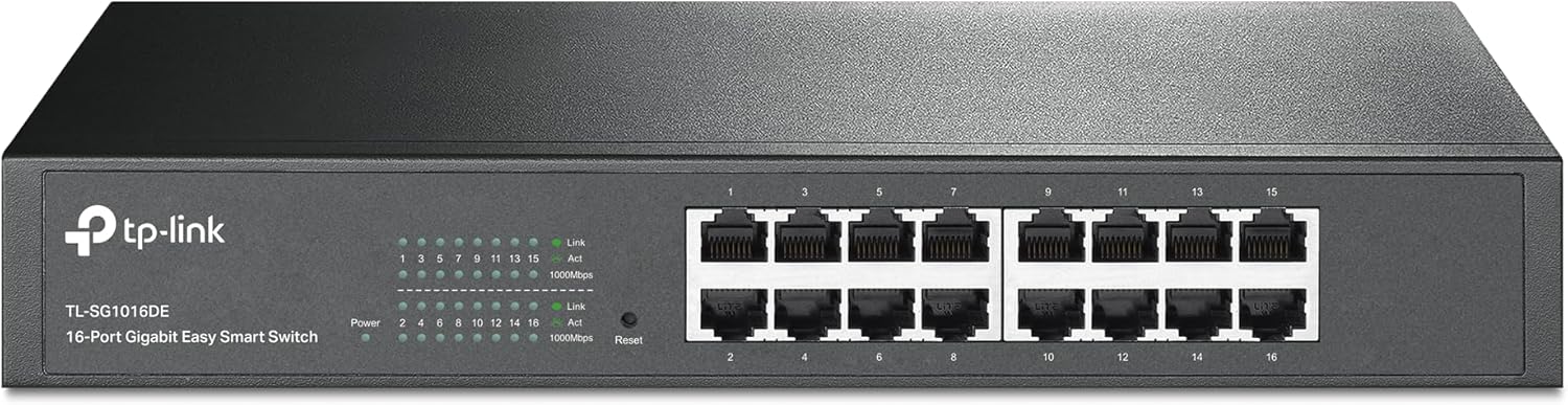 The TP-Link TL-SG1016DE 16-Port Gigabit Easy Smart Managed Switch provides an efficient and cost-effective solution for small and medium-sized businesses. With plug-and-play installation and smart management features, this switch offers improved network performance and security.