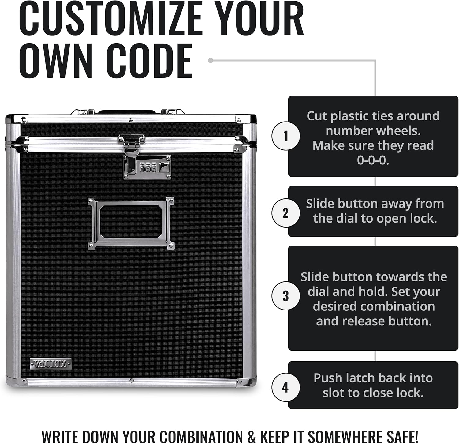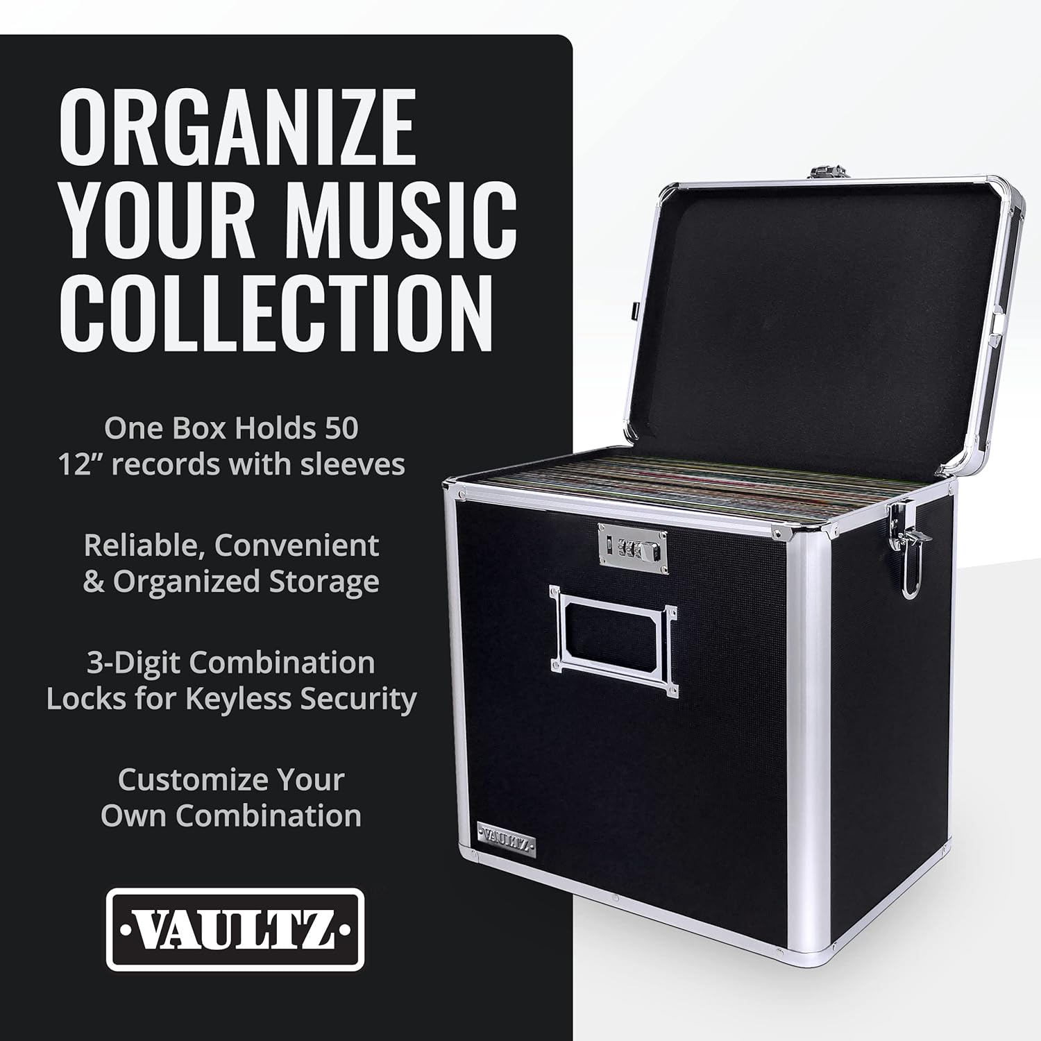 Protect and organize your vinyl record collection with the Vaultz Vinyl Record Storage Box. This locking album holder provides secure and stylish storage for up to 50 records. With its combination lock, reinforced construction, and convenient carrying handle, it's a great alternative to flimsy crates.