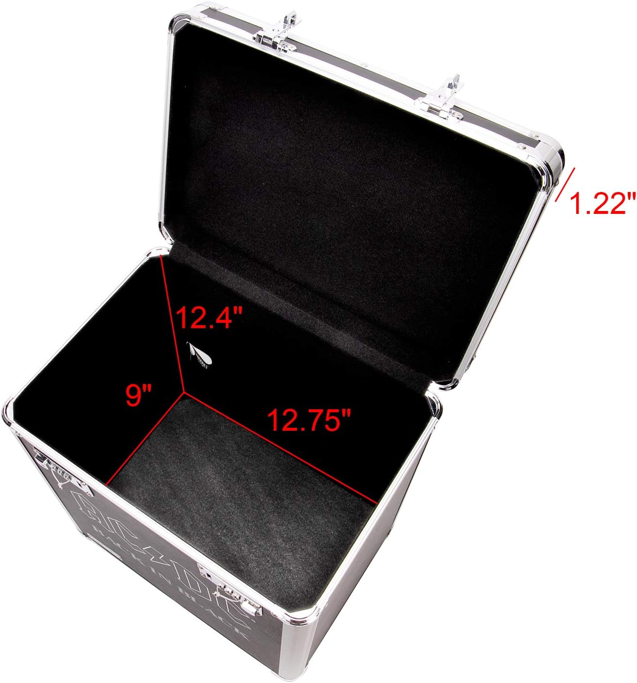 Specifications: * Capacity: Holds up to 50 vinyl records with 12" sleeves. * Security: Features a combination lock for added protection. * Construction: Durable with reinforced hinges, corners, and metal rails. * Base: Anti-scuffing rubber feet.We partner with Amazon and other retailers to provide accurate product information and convenient access to purchase options. As an Amazon Associate we earn from qualifying purchases.