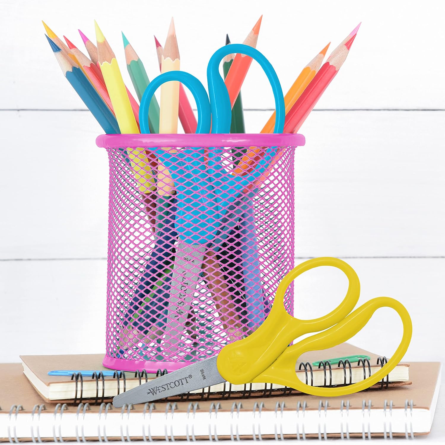 The Westcott Hard Handle Kids Scissors are designed with a child's safety and comfort in mind. These 5-inch scissors feature pointed blades for accurate cutting, molded asymmetrical handles for increased control, and durable stainless steel construction for lasting performance.