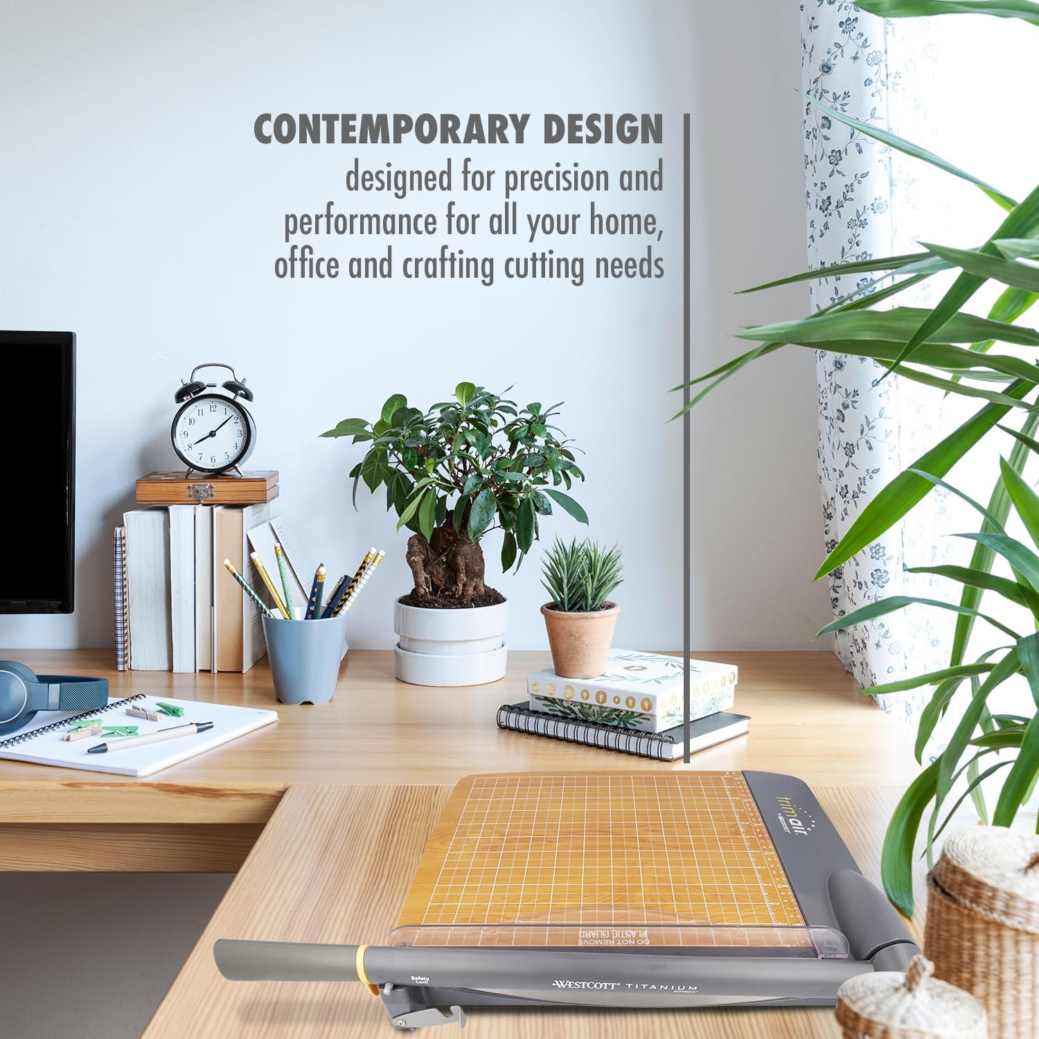 The Westcott 12'' TrimAir Wood Guillotine Paper Cutter & Paper Trimmer combines style and performance for all your cutting needs. Featuring a titanium-bonded blade that slices through up to 30 sheets of paper at once, this trimmer ensures clean and accurate cuts every time. Its natural wood base adds a touch of elegance to any workspace, making it perfect for home, office, or classroom use.