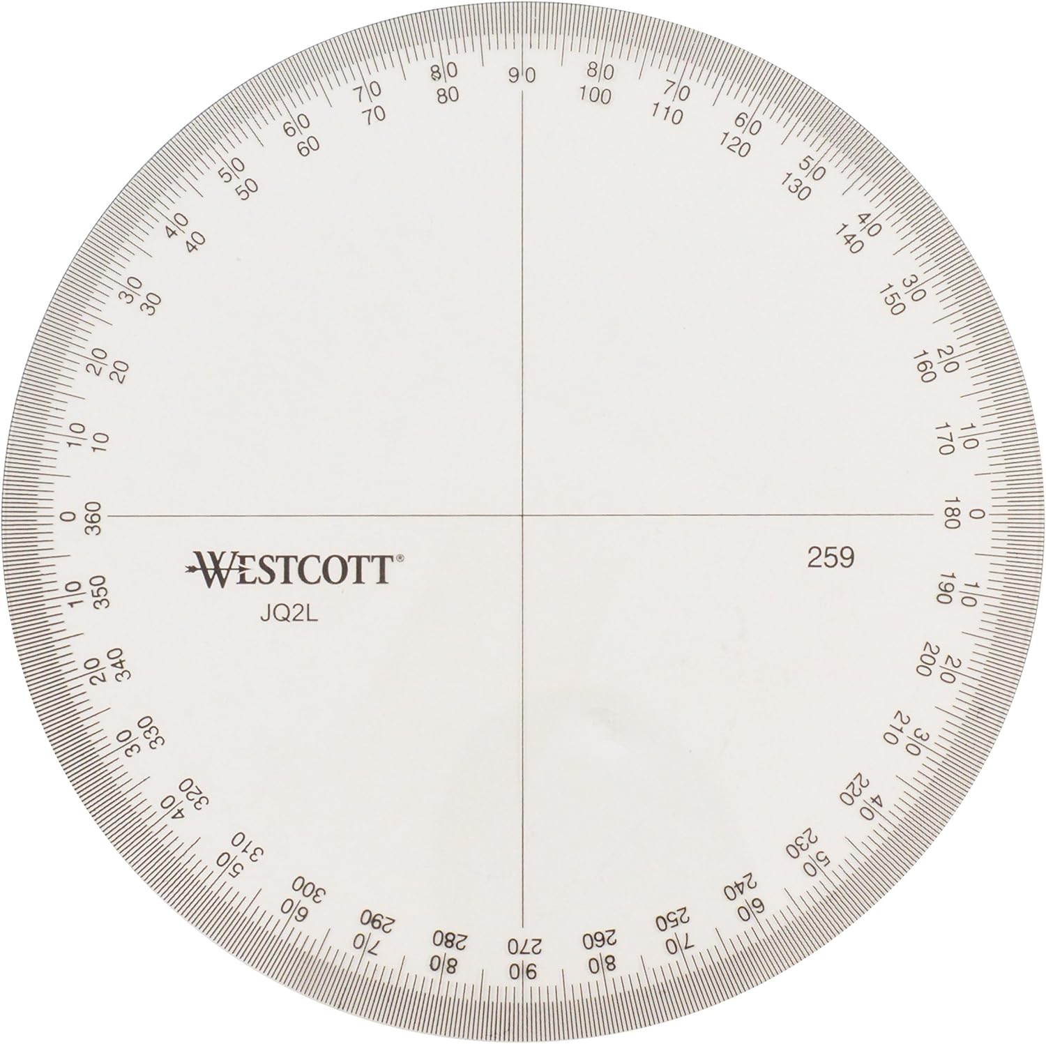 The Westcott 4-Inch Circular Protractor Measuring Tool provides accurate measurements for artists, designers, and students. Made from clear, transparent plastic, this 360-degree protractor is perfect for drafting and drawing needs.