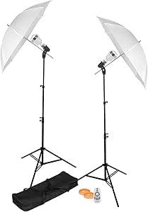 Overview: The Westcott uLite LED 2-Light Umbrella Continuous Lighting Kit provides an easy-to-use, complete lighting solution for studio and on-location photography. With dimmable, daylight-balanced LED lamps, diffusion umbrellas, and a convenient travel case, this kit is perfect for portraits, product photography, and vlogging. Specifications: * **Light Source:** 45W Dimmable Daylight LED Bulbs * **LED Rating:** 20,000+ hours of use * **CRI:** Up to 93 * **Output:** 1370 lux at 1 meter * **Color Balance:** Daylight (with removable tungsten gel cap) * **Umbrellas:** 33" White Diffusion Umbrellas * **Remote Control:** 2.4 GHz RF dimmer remote (200’ range) * **Channels:** 4We partner with Amazon and other retailers to provide accurate product information and convenient access to purchase options. As an Amazon Associate we earn from qualifying purchases.