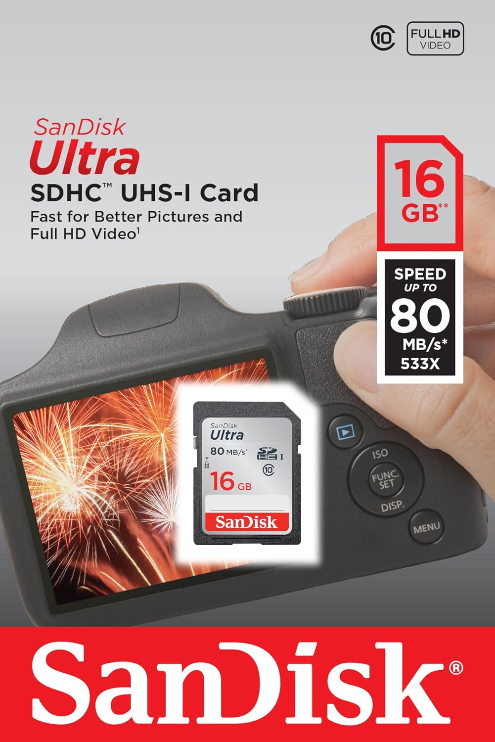 - Memory Card: SanDisk 16GB Class 10 SDHC UHS-I (Up to 80MB/s)