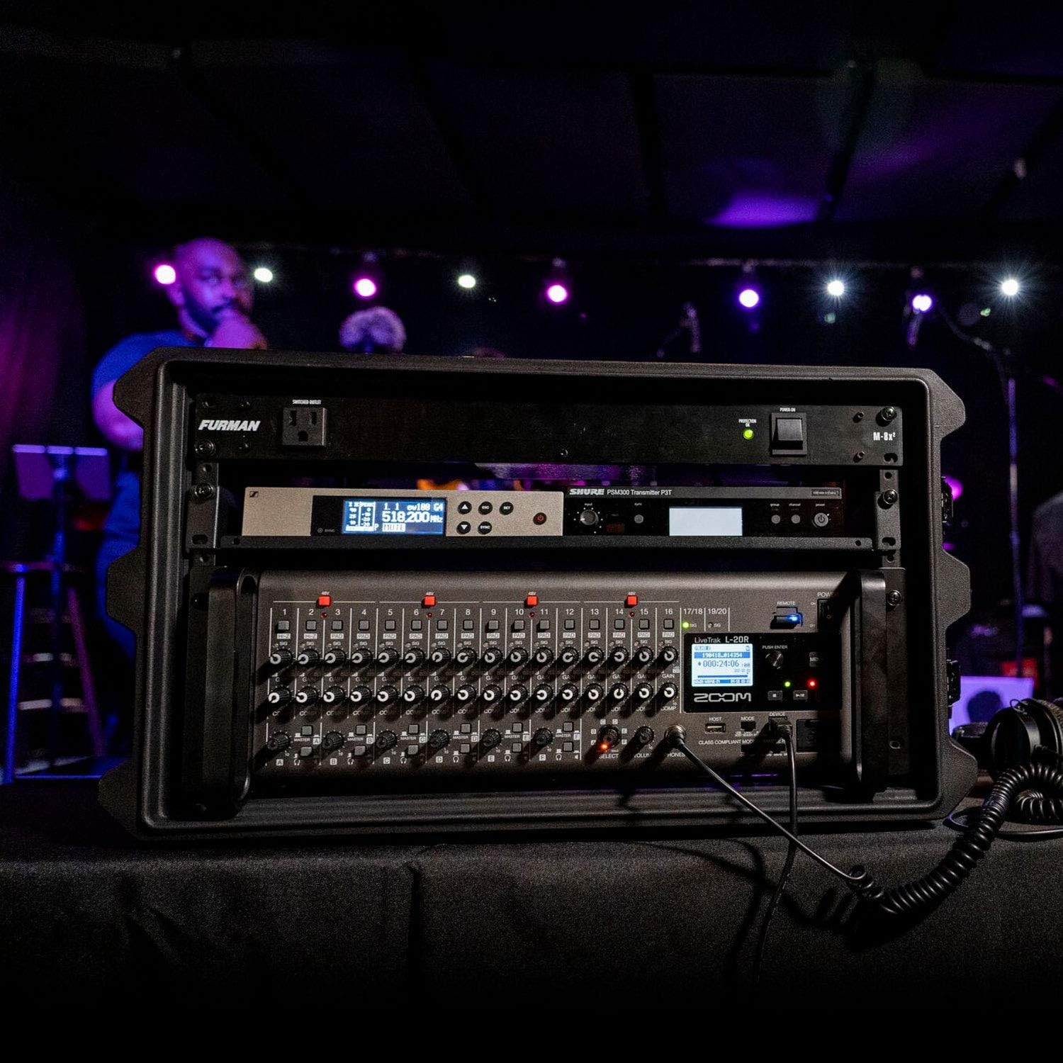 The Zoom LiveTrak L-20R is a rack-mountable digital console designed for musicians and engineers. With wireless control, 20 discrete channels, and versatile recording capabilities, this console provides a complete solution for mixing, monitoring, and recording live performances.
