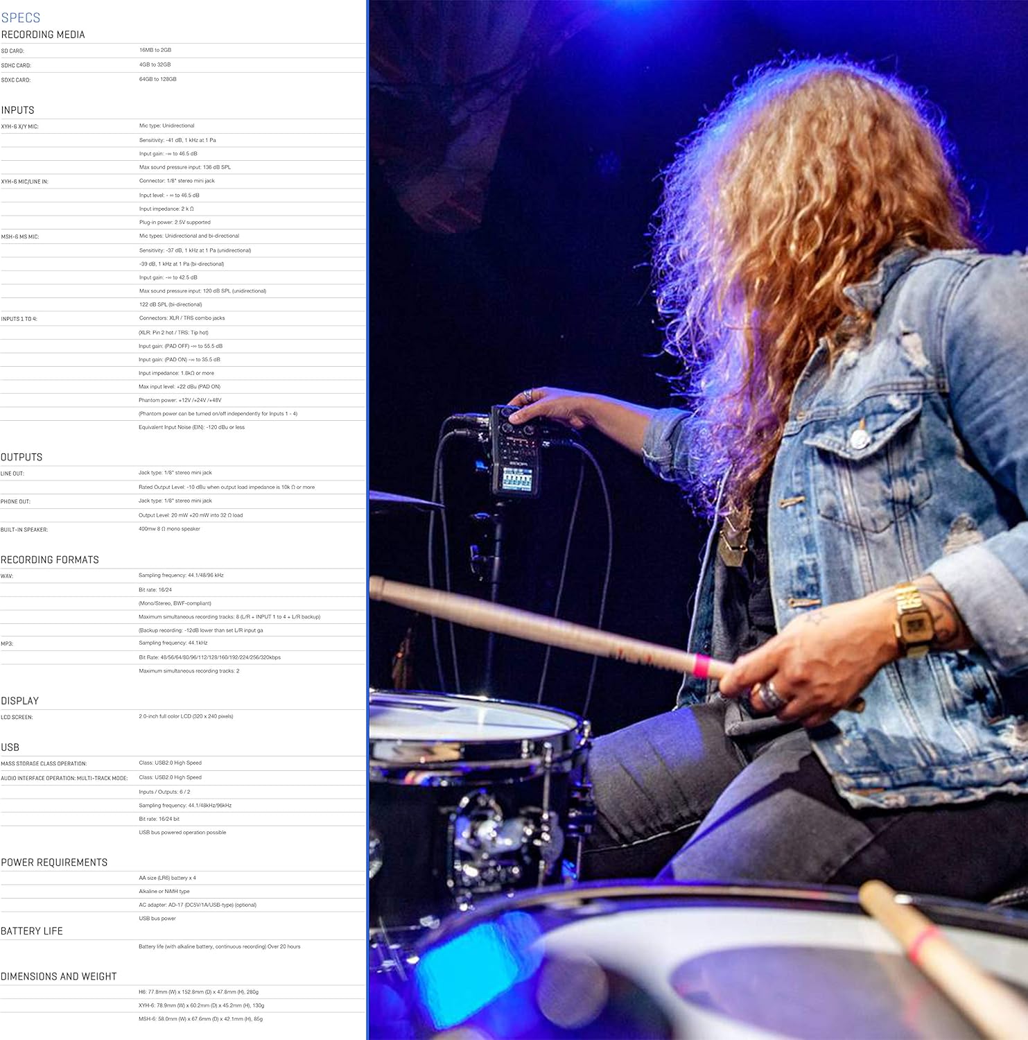 - Tracks: Up to 6 Simultaneous Recording Tracks