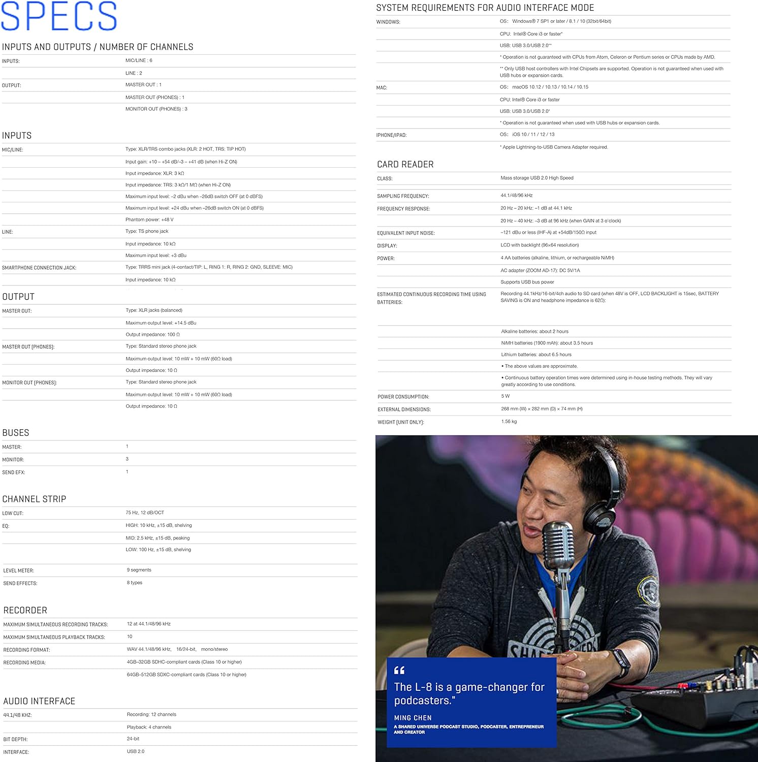 Zoom LiveTrak L-8 Podcast Mixer Bundle ZDM-1 Microphones